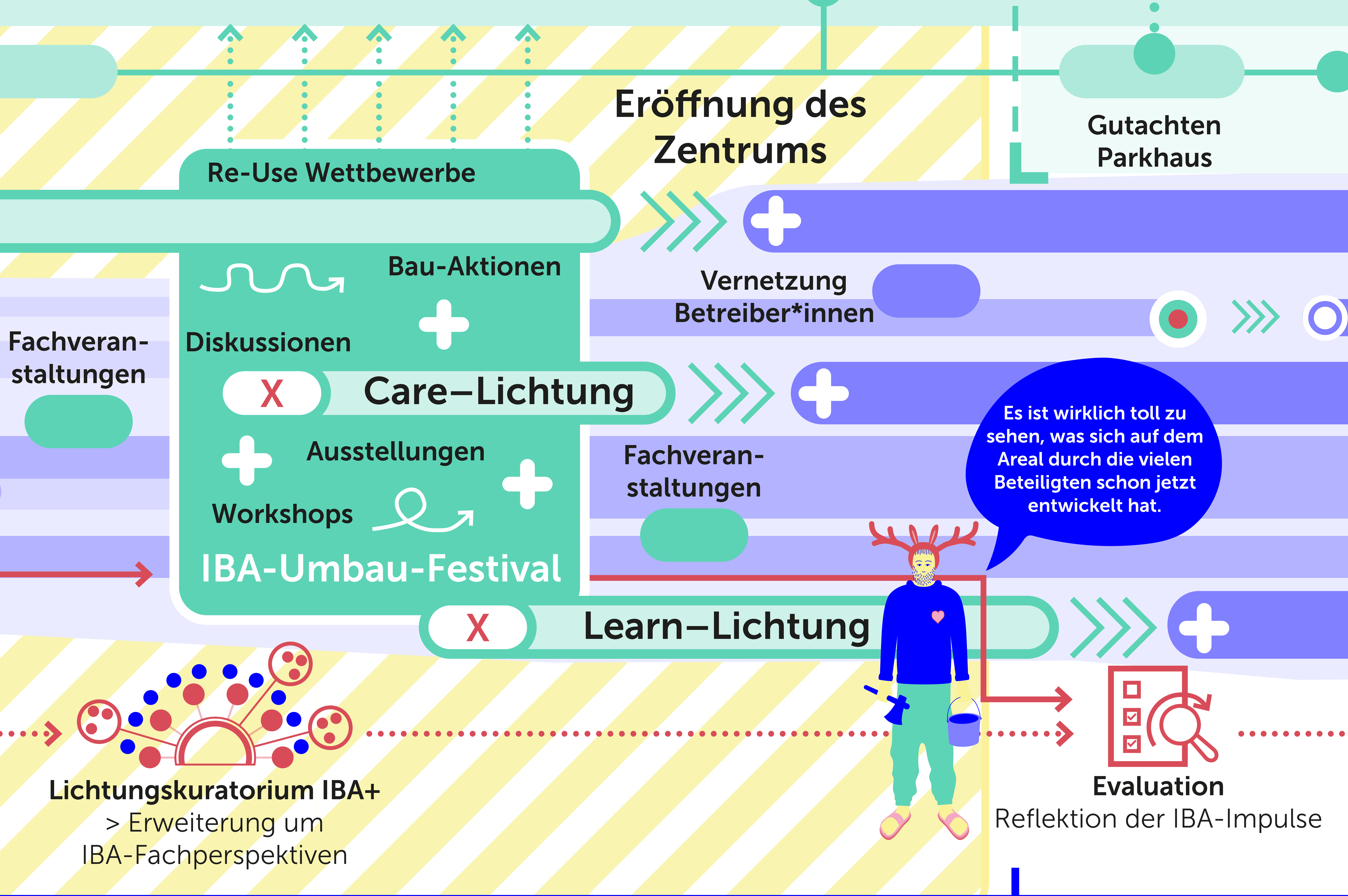 Im Rahmen der IBA-Sondierungsphase präzisierten wir zentrale räumliche Entwicklungsszenarien. Wir analysierten Szenarien auf Stadt-, Quartiers- und Liegenschaftsebene, entwickelten Narrative und leiteten strategische Handlungsempfehlungen ab.